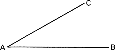 Twee snijdende lijnen vormen met elkaar een hoek. In deze figuur is punt A het hoekpunt. AB en AC zijn de benen van de hoek.